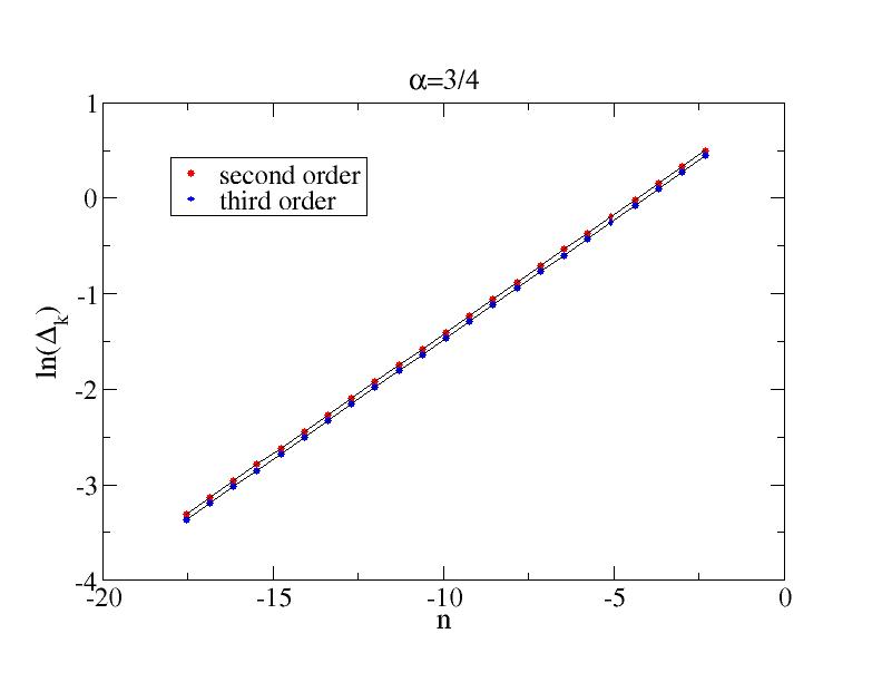 alpha=3/4, 1st order: slope = 0.24996