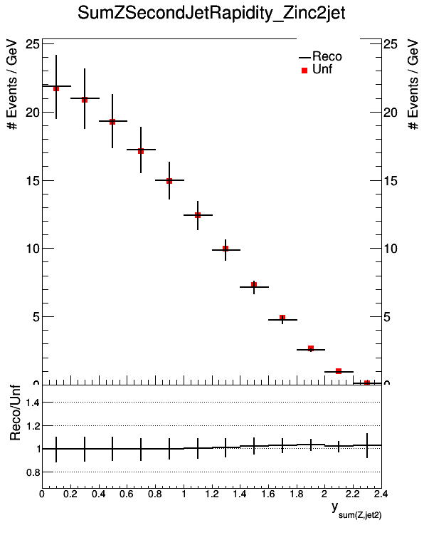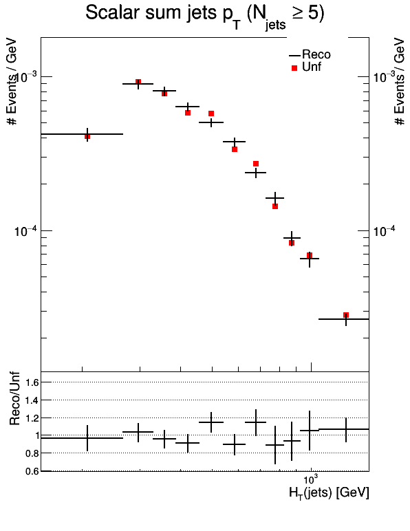 Reco = re-binned reconstruction data (to match the gen binning) with background and fakes subtracted and corrected for efficiency and integrated lumi